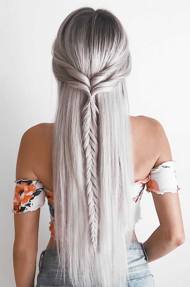 Outro tom de loiro platinado que tem feito sucesso é acinzentado ou prateado. Essa tonalidade confere um visual moderno e cheio de personalidade e ousadia.