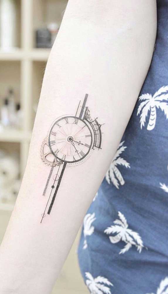 Imagem 1 – Olha que interessante essa tatuagem de relógio no antebraço para você se inspirar.