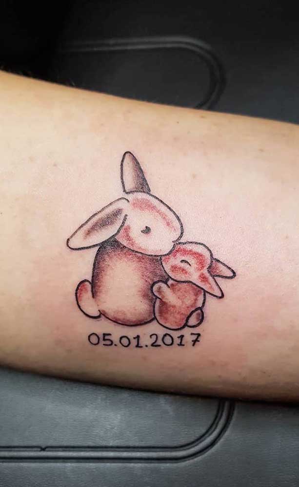 Imagem 13 – E que tal uma tatuagem para filho com coelhinhos? Super fofa!
