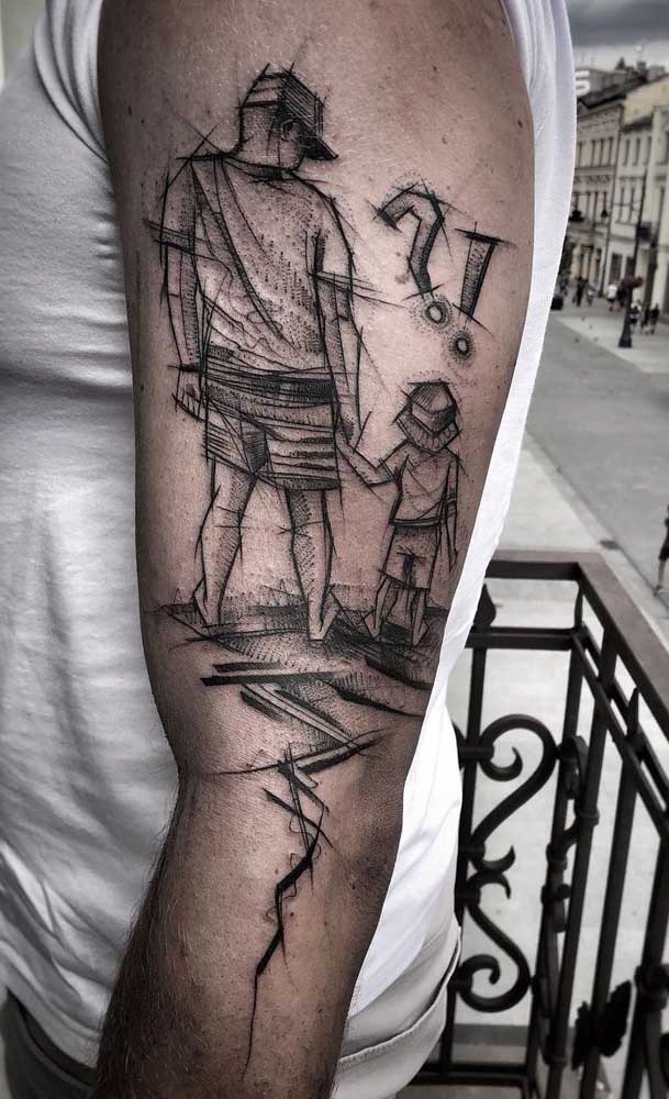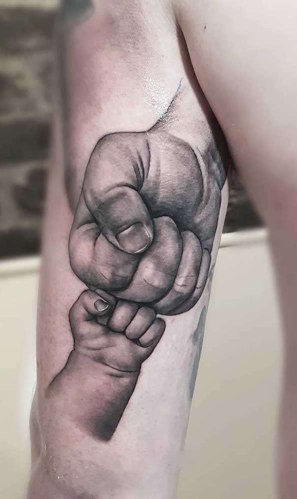 Os papais que desejam demonstrar o amor pelo filho podem optar por tatuagens como a de um homem com uma criança nos ombros ou a silhueta de um homem de mãos dadas com uma criança.