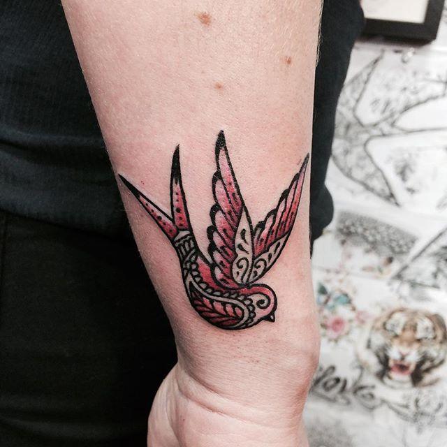 A reprodução da andorinha nas tatuagens teve início entre os marinheiros da década de 40. Por ser um pássaro que cruzava os mares, percorria longas distâncias e retornavam sempre com segurança, muitos a escolhiam para simbolizar boa sorte e esperança em regresso aos seus lares. Além disso, por ser uma ave monogâmica, manifesta o amor verdadeiro, integridade e fidelidade seja com a família, parceiro, amigos. Há quem a adote por representar suas experiências e aventuras da vida por ser uma ave migratória. Outros a elegem por trazer o ciclo da Primavera repleto de boas energias, novidades, abundância e crescimento. Enfim, os modelos e estilos são inúmeros.