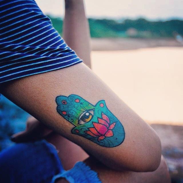Imagem 33 – Tatuagem de Hamsá colorida no braço