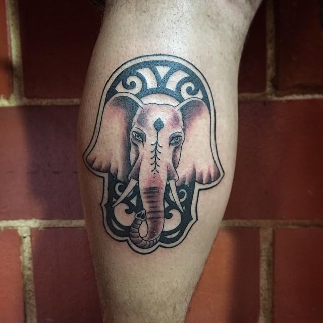 Imagem 50 – Tatuagem de Hamsá com elefante de contorno