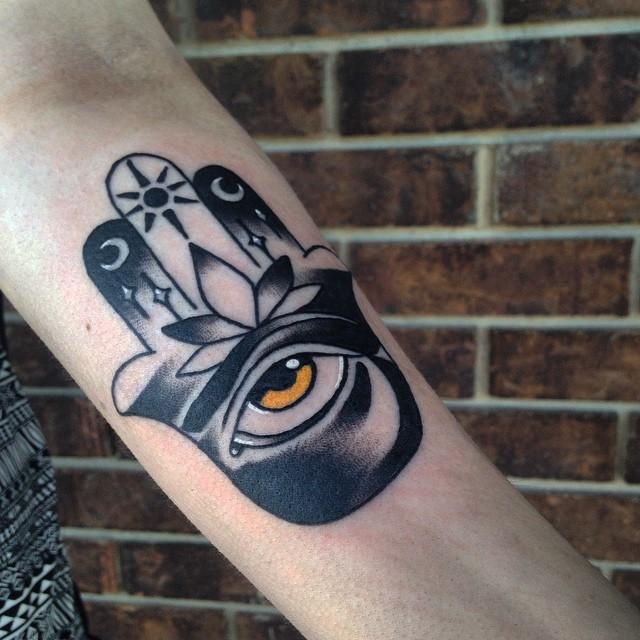 Imagem 46 – Tatuagem de Hamsá monocromática no braço