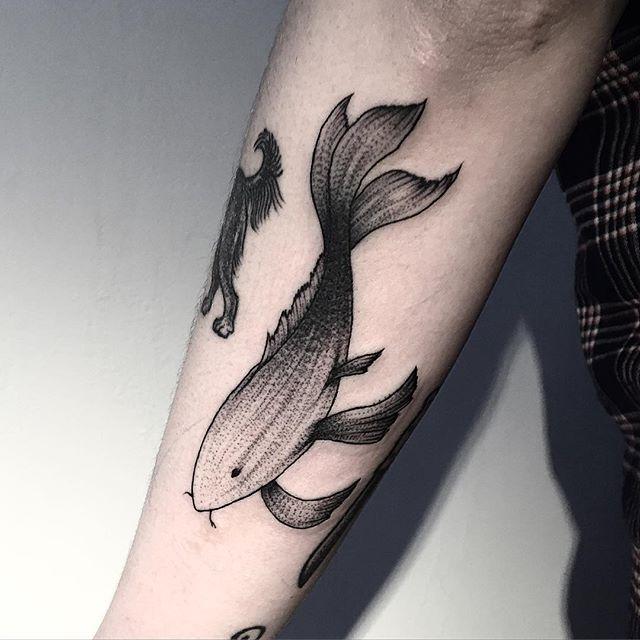 Imagem 68 – Tatuagem de peixe com linda textura no braço
