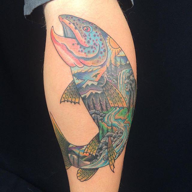 Imagem 14 – Tatuagem de peixe colorido na perna