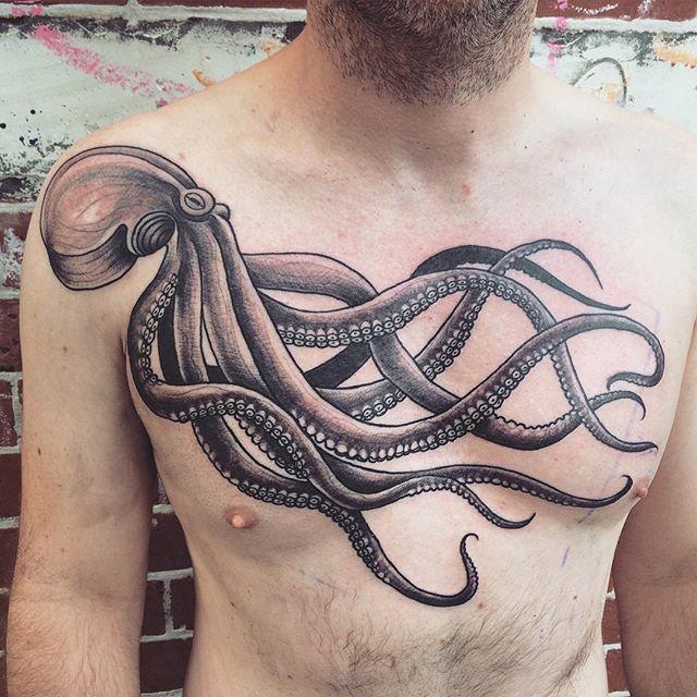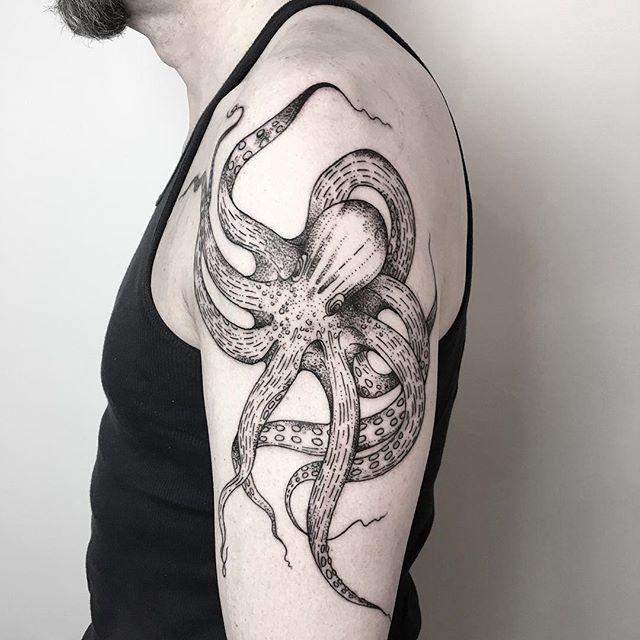 Por ser uma figura aquática, o polvo está associado aos elementos da água: intuição, fluidez, sensibilidade, instinto. Por possuir habilidades fenomenais, este é também sinônimo de mistério, força, criatividade e inteligência. Tais fatores o colocam entre uma das tatuagens de seres marinhos prediletos tanto entre o público feminino e masculino. Versátil, o polvo fica incrível monocromático ou colorido, pequeno ou grande, em qualquer área do corpo. Os mais ousados estampam em formatos maiores seja por todo o braço, perna ou mão. O resultado em todos os casos é surpreendente e cheio de vida!