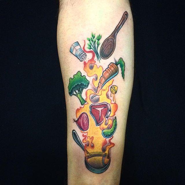 A arte de cozinhar traz consigo cinco pilares: dedicação, intuição, habilidade, prazer e conhecimento. E, para expressar seu amor à essa profissão em constante ascensão, nada melhor do que estampar na sua pele uma figura relacionada tal como outros renomados chefs.