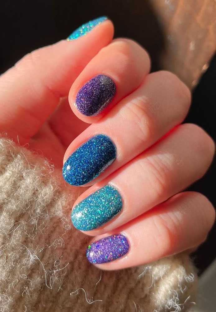 Unha decorada com glitter degrade